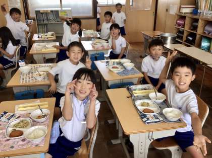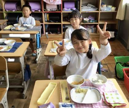 6月12日(水)の梅坪小学校(7)2年生の会食風景