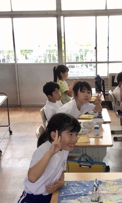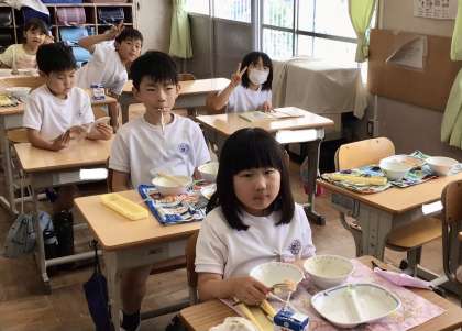 6月12日(水)の梅坪小学校(10)2年生の会食風景