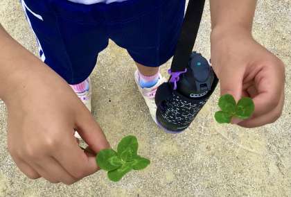 2年生が、四つ葉のクローバーを2つも見せてくれました!