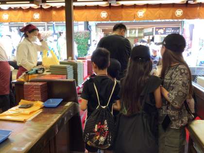 最後の買い物タイムでした。お土産のお店がたくさんあり、どれにしようか迷いながら買っていました。