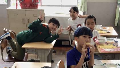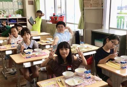 6月13日(木)の梅坪小学校(7)3年生の会食風景