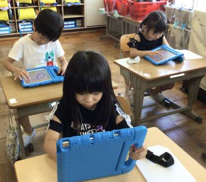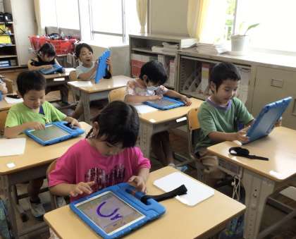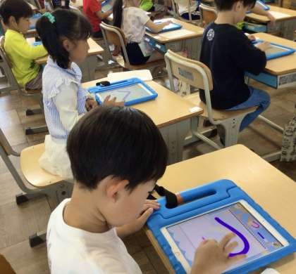 1年生、初めてのタブレット学習は 国語、ひらがなの習得です。