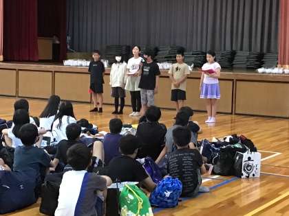 帰着式の様子です。6年生の皆さんから、保護者の方に「ただいま!」の元気なあいさつが響きました。
