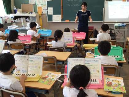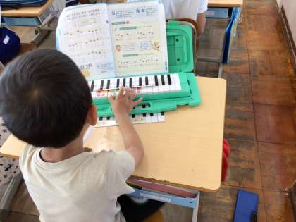 鍵盤ハーモニカでかっこうの練習をしていました。息の吹き方が難しそうです。