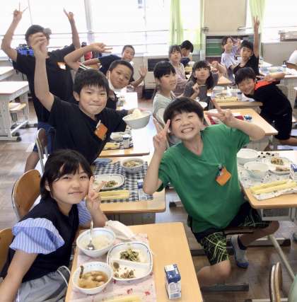 6月14日(金)の梅坪小学校(9)4年生の会食風景