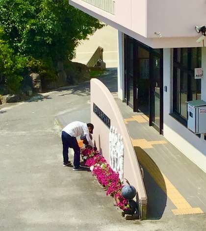 6月14日(金)の梅坪小学校(14)花いっぱいの梅小 公開日 2024/06/14 更新日 2024/06/15 地域学校共働本部(コミュニティ・スクール) 正面玄関横、赤紫のサフィニアが見事に咲き続けています。 校内整備員さんが、暑い中、丁寧につみ取り作業をしてくださっていました。 正門前の花壇の整備も行ってくださいました。 また、日頃から花壇ボランティアさんのおかげもあって、梅小には花が咲きあふれています。 ありがとうございます!
