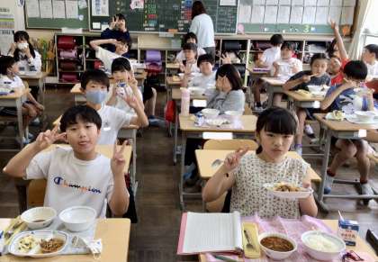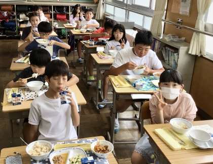 6月17日(月)の梅坪小学校(7)5年生の給食風景