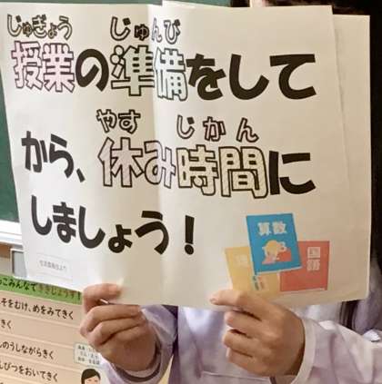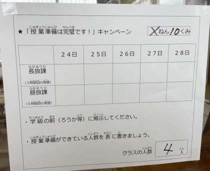 各クラスをまわり、「授業準備は完璧です!」キャンペーンの説明をしています。