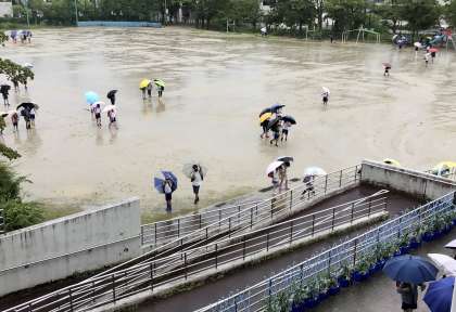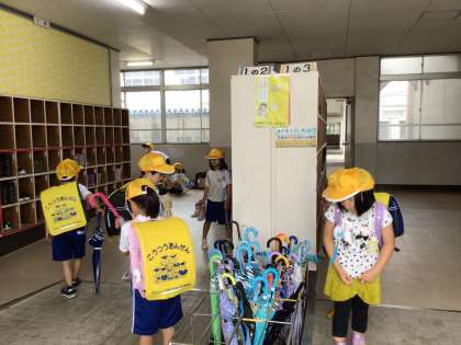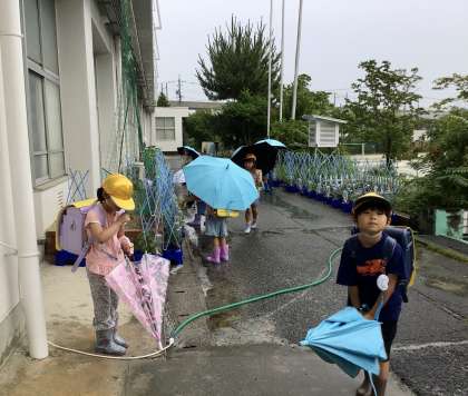 6月21日(金)の梅坪小学校(1)雨の登校
