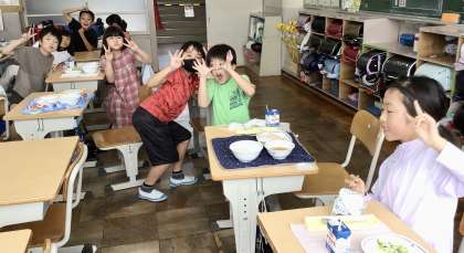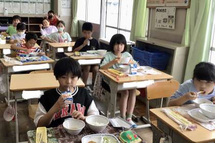 6月21日(金)の梅坪小学校(10)3年生の給食風景