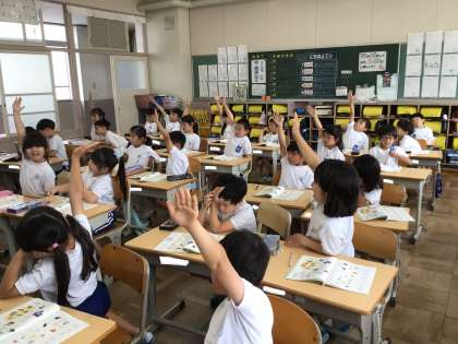 6月24日(月)の梅坪小(16)1年生 国語 ことばあそび
