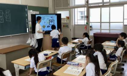 前に出て、デジタル教科書で発表する場面と、めりはりのある授業です。