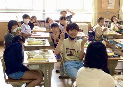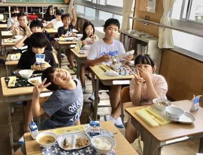 6月25日(火)の梅坪小(9)5年生の給食風景です!