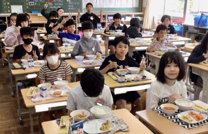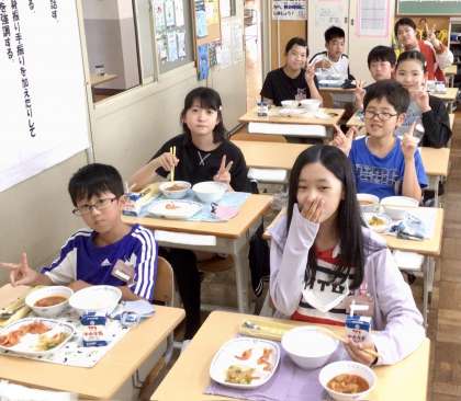 6月26日(水)の梅坪小(9)6年生の会食風景