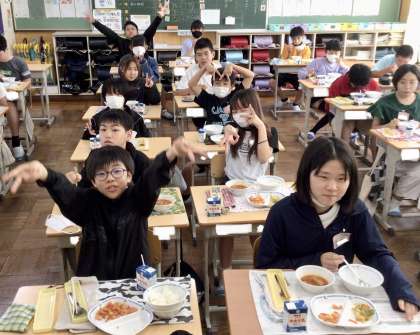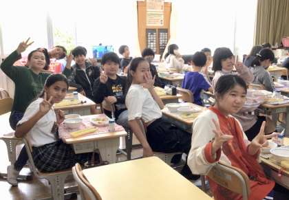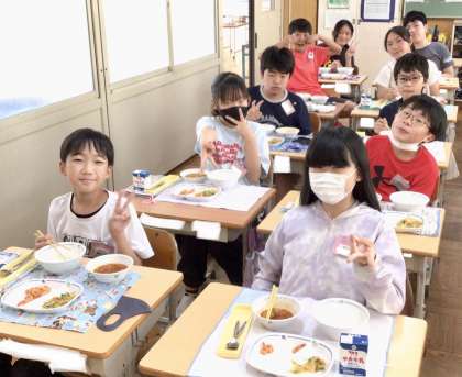 6月26日(水)の梅坪小(10)6年生の会食風景