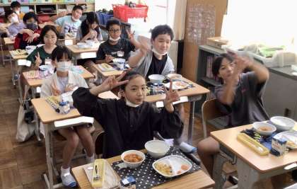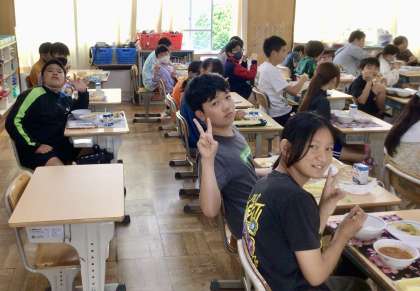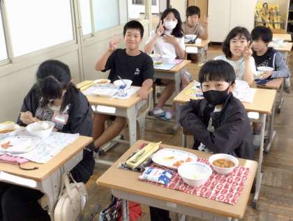 6月26日(水)の梅坪小(11)6年生の会食風景