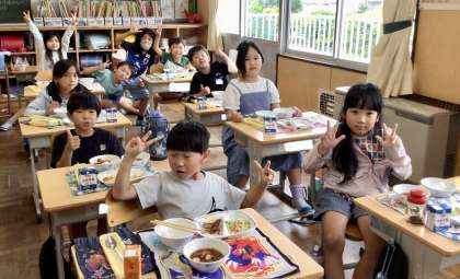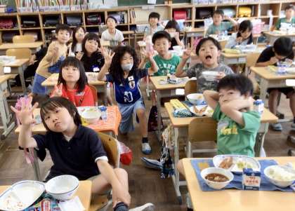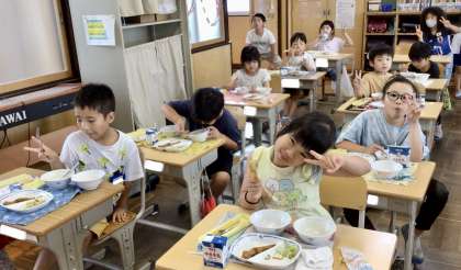 6月28日(金)の梅坪小(4)2年生の給食風景