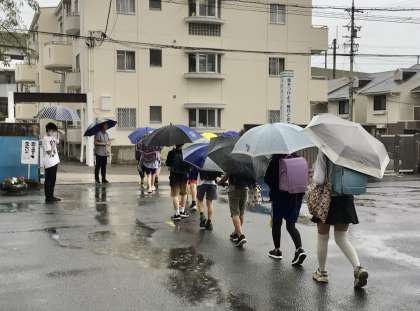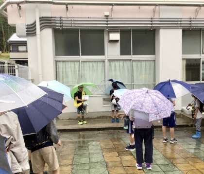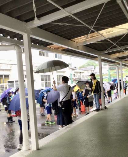 下校時も雨。生活委員から安全な下校の呼びかけもありました。