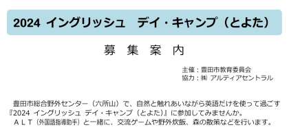 募集案内 → 2024 イングリッシュ デイ・キャンプ(とよた)募集案内