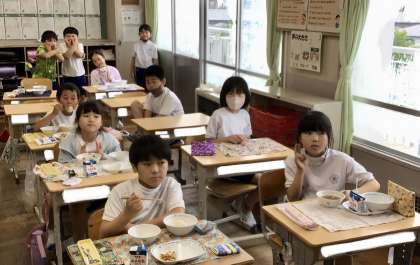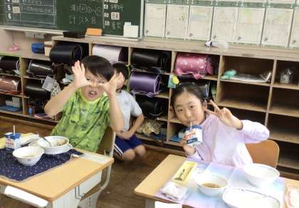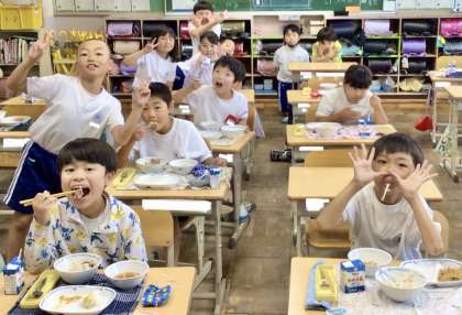 7月1日(月)の梅坪小(6)3年生の給食風景