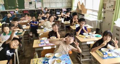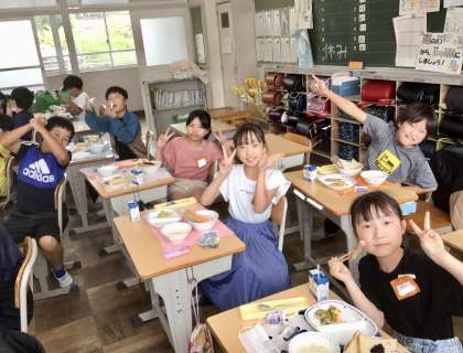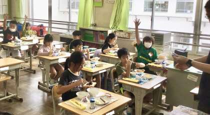 7月2日(火)の梅坪小(12)4年生の給食風景