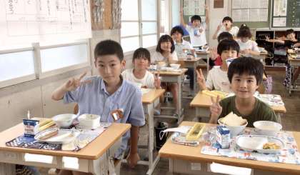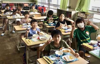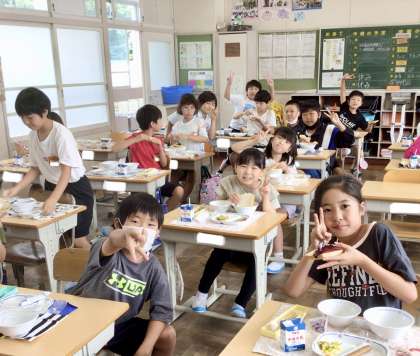 7月2日(火)の梅坪小(13)4年生の給食風景