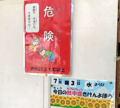 7月3日(水)の梅坪小(6)熱中症警戒アラート発令中