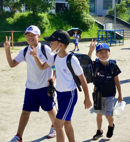 7月4日(木)の梅坪小(2)登校の様子