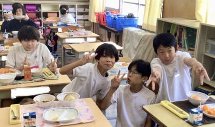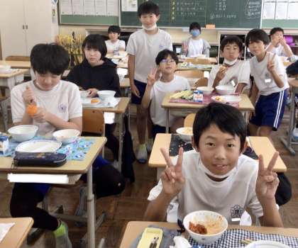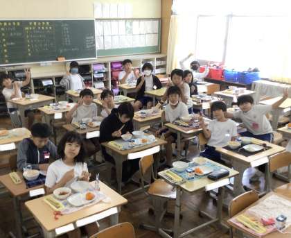 7月4日(木)の梅坪小(12)6年生の給食風景