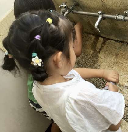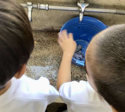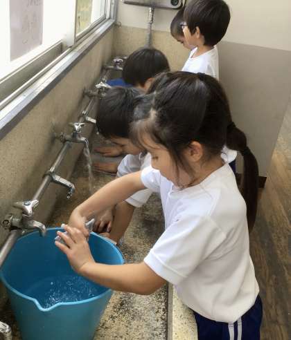 7月4日(木)の梅坪小(14)1年生の清掃風景