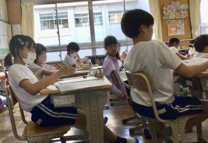 毎回、デジタル教科書やタブレットの映像を駆使して展開していく外国語の授業です。