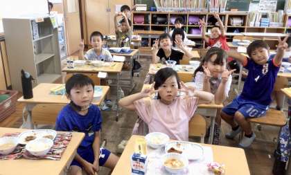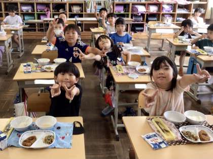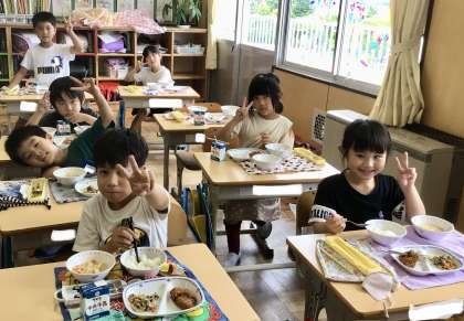 7月8日(月)の梅坪小(4)2年生の会食風景