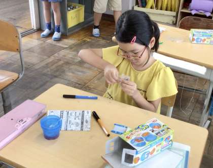 7月8日(月)の梅坪小(15)3年生 理科 音のふしぎ