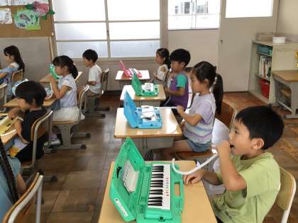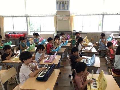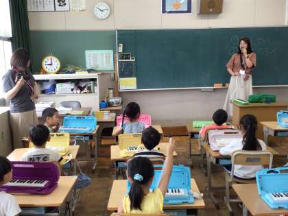 7月8日(月)の梅坪小学校(18)1年生 鍵盤ハーモニカ講習