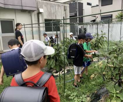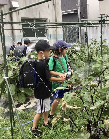 2年生の畑では、ナスが大きく育っています!