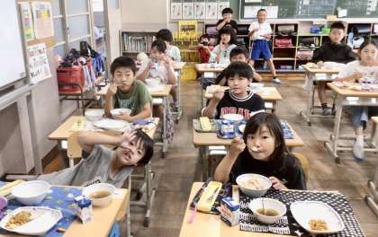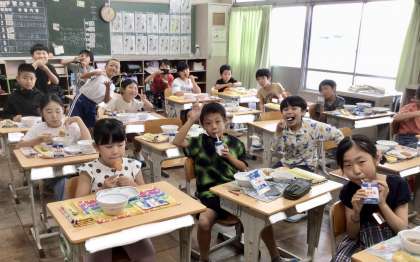 7月9日(火)の梅坪小(9)3年生の会食風景