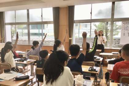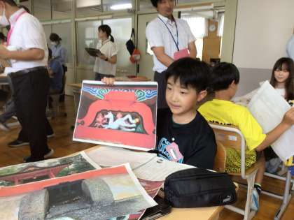 学習単元は、「話す・聞く」の領域で、子どもたちが5年生を対象に、修学旅行の名所旧跡などの見どころをリポーターになりきって分かりやすく伝えるというものです。