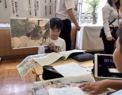 学習用タブレットで時間を計り、話す速さ、強調する箇所、間の取り方、フリップの活用などをチェックしました。