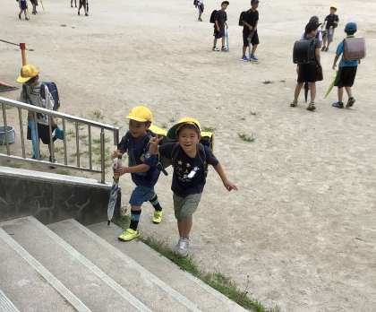 7月10日(水)の梅坪小(1)登校風景