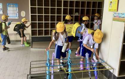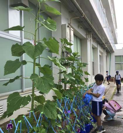 7月11日(木)の梅坪小(2)ひまわりが大きくなりました!
