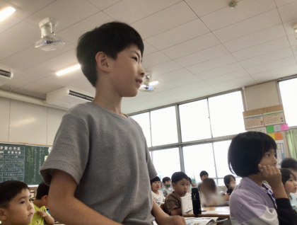 7月12日(金)の梅坪小(16)2年生 図書館出前授業 動物カードを作ろう!