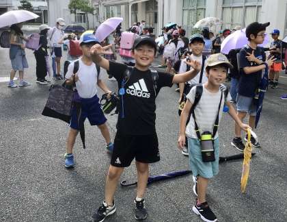 下校時には厳しい陽射しがありましたが、子どもたちは元気な様子。^ ^