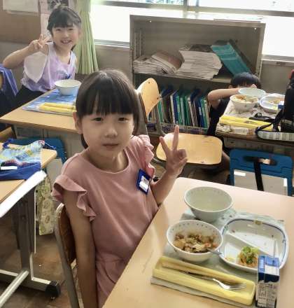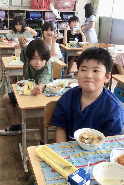 7月17日(水)の梅坪小(7)2年生の給食風景