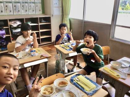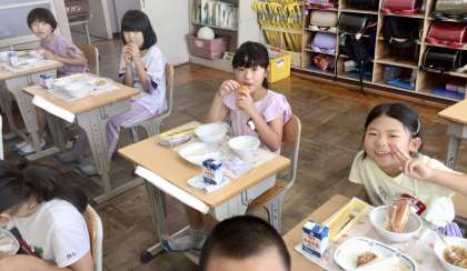 7月18日(木)の梅坪小(11)3年生の会食風景