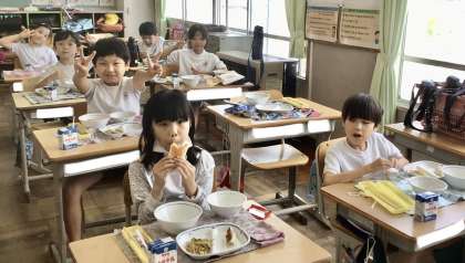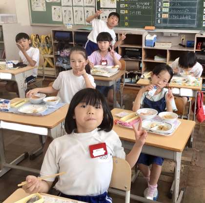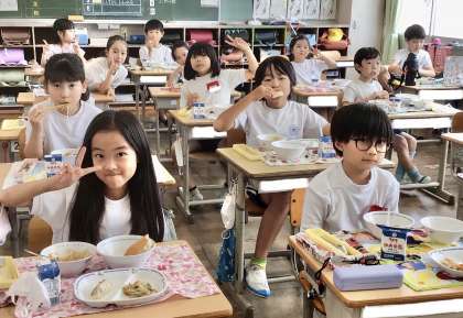 7月18日(木)の梅坪小(12)3年生の会食風景