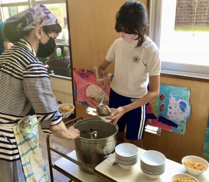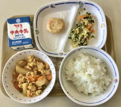 夏休み前、最後の給食は、おやこに、豆腐しんじょ、おひたし の和食メニューです!