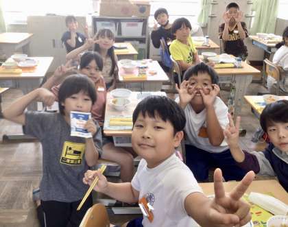 7月19日(金)の梅坪小(8)4年生の給食風景