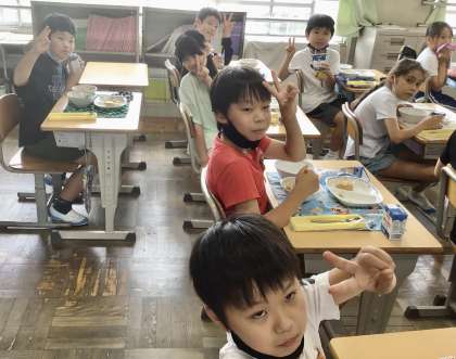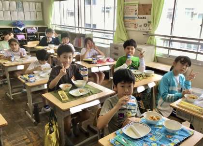 7月19日(金)の梅坪小(11)4年生の給食風景