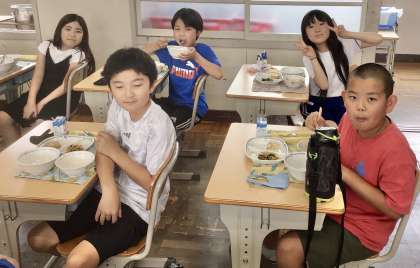 7月19日(金)の梅坪小(12)4年生の給食風景