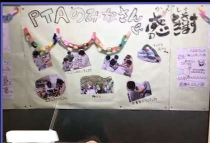 また、運営委員会の皆さんが、PTA活動で学校をきれいにしたり、ボランティアとして活動してくださった、お父さん、お母さん方への感謝の掲示物が紹介されました。